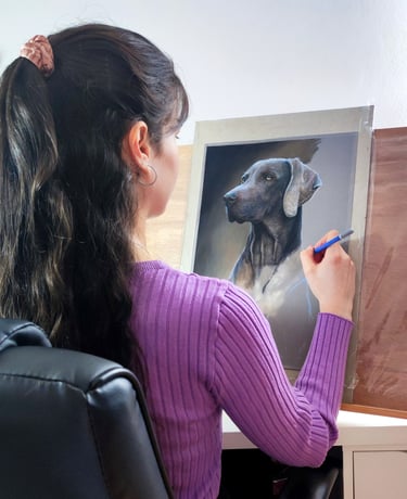 Commissions are how I started my art career, offering various sizes and mediums to ensure that each commissioned artwork is tailored to a clients preferences. From wedding photos, to passed on grandparents, to beloved pets, I had the opportunity to transform many cherished memories into unique pieces of art. If you're looking for a truly personal gift, I still offer portrait artwork just like this! Commission me here!